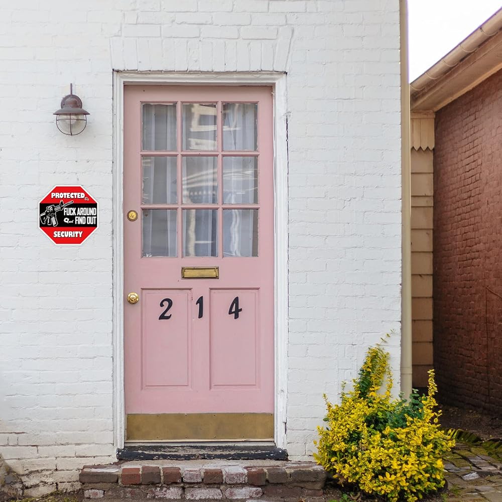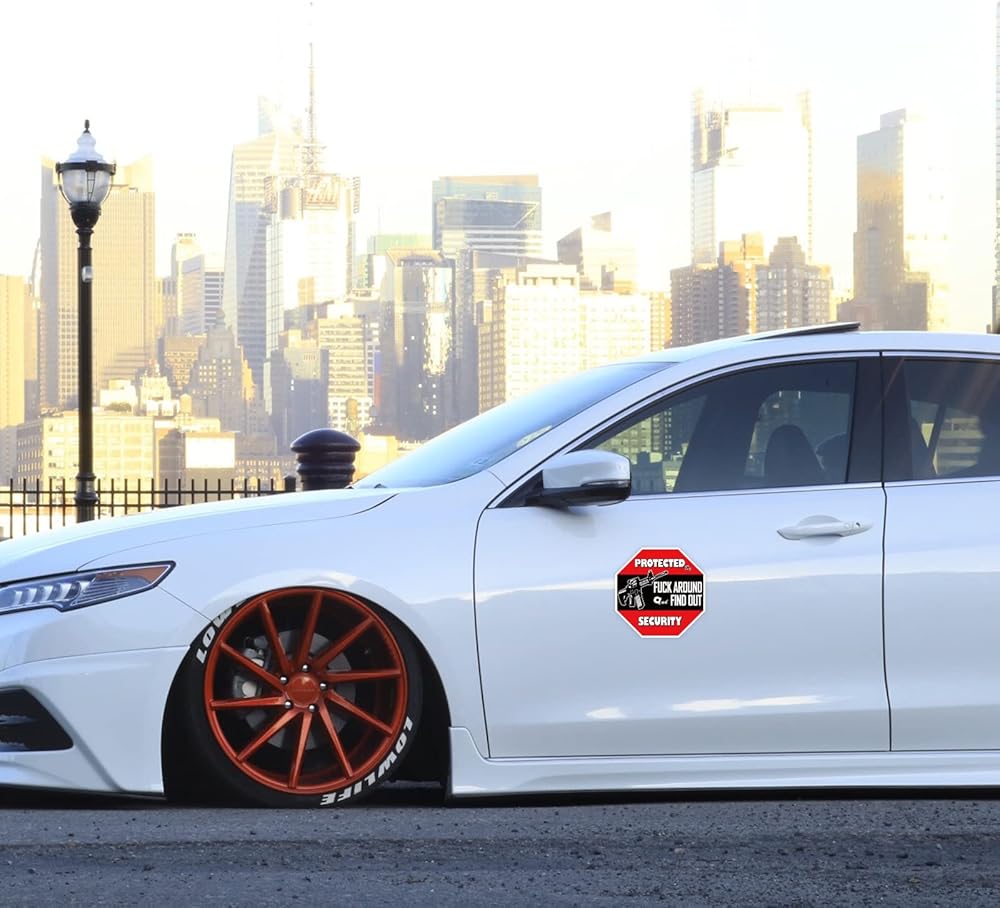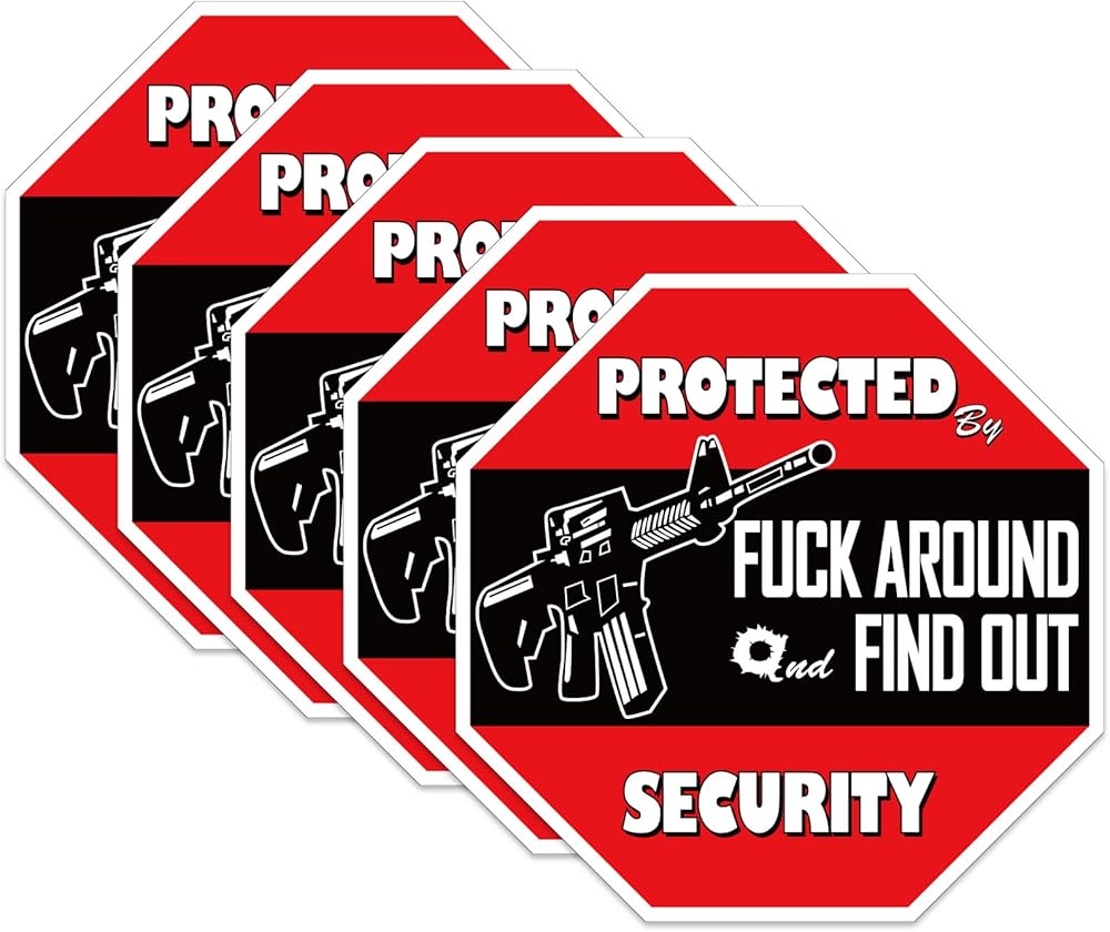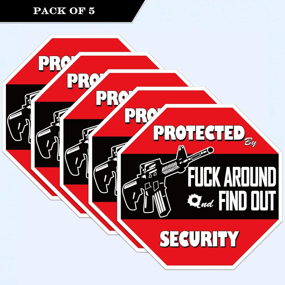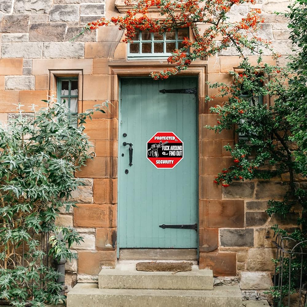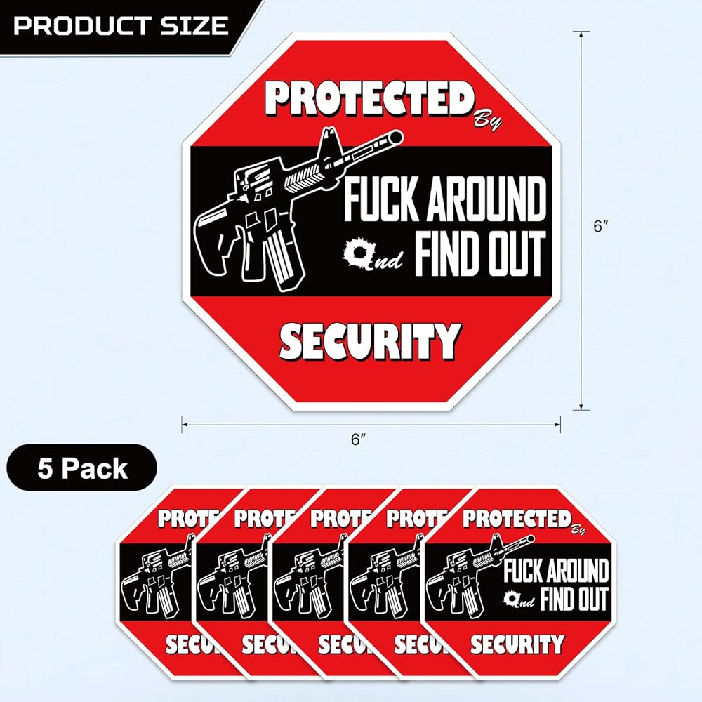 Great Gift:Decal reads "Protected by Fuck Around and Find Out Home Security . Suitable for Car/Vehicle/Bumper/Truck/Home/Window/Door/Wall/Laptop More.