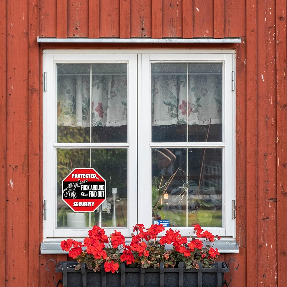 Protected By Fuck Around And Find Out : Red and Black color with White font . FAFO Funny stickers,A Sign is an ideal way to get a message across to your neighbors and passersby.