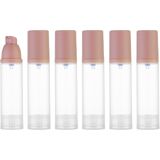 Travel Pump Bottle for Lotion - Airless Pump Container 1.7oz Empty for Cosmetic Oil - Small Dispenser Refillable for Travel Size Shampoo Mini Jar for Toiletry Foundation Makeup 50ml 6pcs Pink