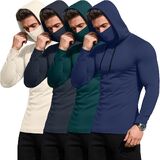 4 Pack Men's Compression Hoodies with Mask Sweatshirt Long Sleeve Workout Sports Base Layer Active Running Pullover in Kuwait