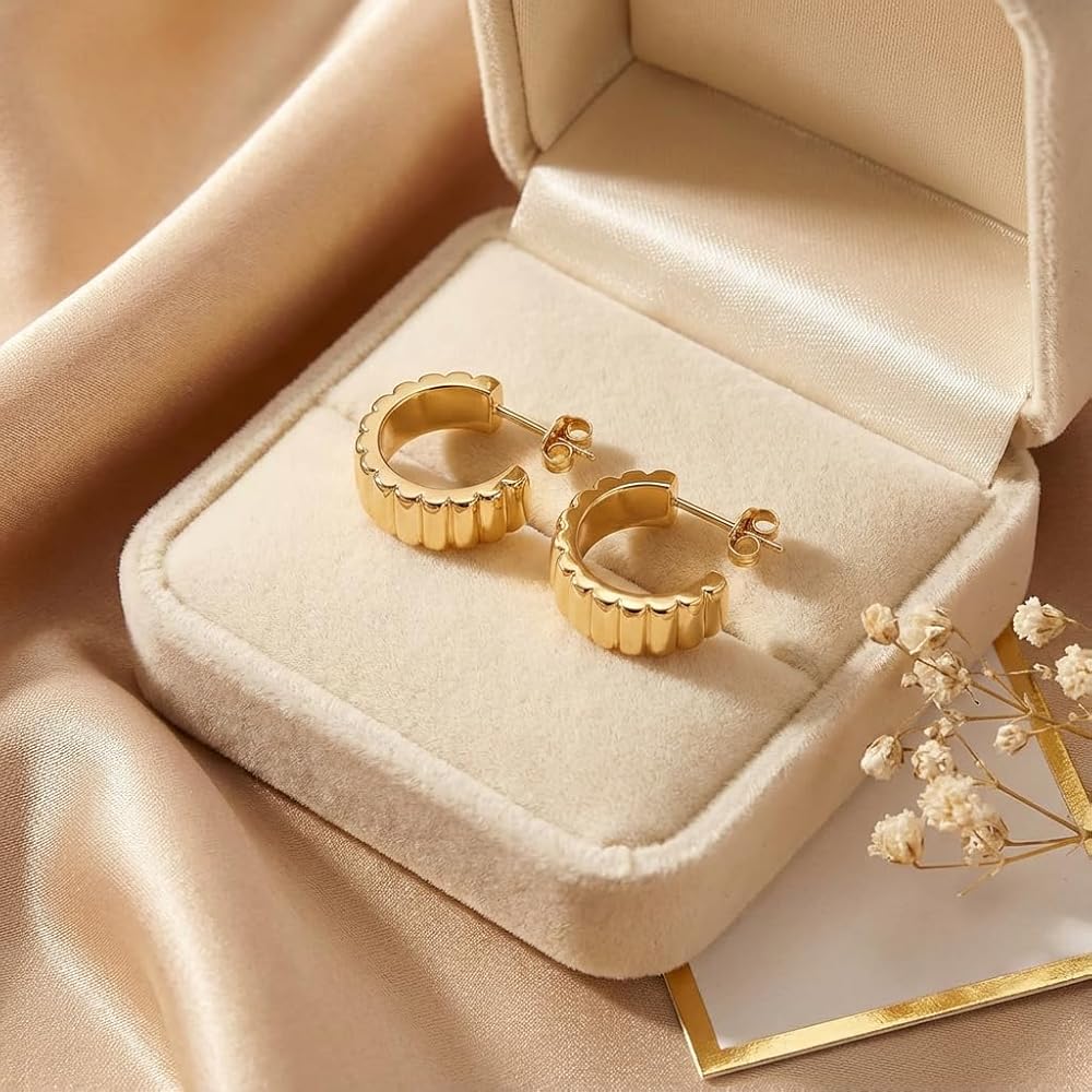 TIMELESS ELEGANCE - Featuring a sophisticated ribbed texture and a classic croissant-inspired silhouette, these gold hoop earrings add an instant touch of Parisian chic to any outfit.
