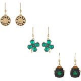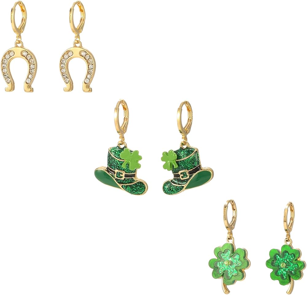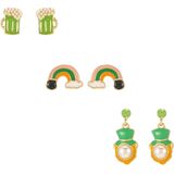 St. Patrick's Day Lucky 3-Pair Stud Set – Celebrate Irish charm with this festive earring collection featuring classic symbols: a lucky four-leaf clover, a playful leprechaun hat, and a vibrant rainbow. Perfect for St. Patrick's Day parties, Irish-themed events, or adding a touch of Celtic whimsy to everyday style!