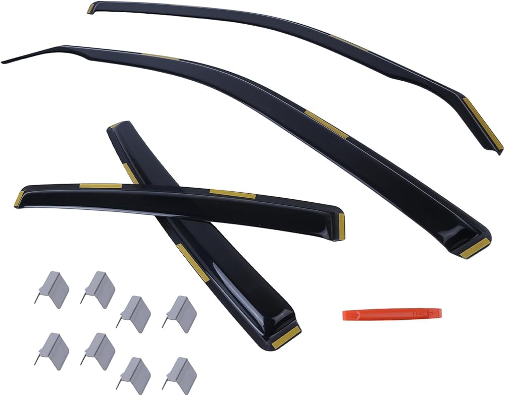 【Easy installation】the wind deflectors are designed with adhesive tape design, just slip it onto your car's window, no-drilling required, easy in-channel installation, hassle-free to set up, saving you time and effort. This is a set of 4 vent visors for the side windows of your vehicle.