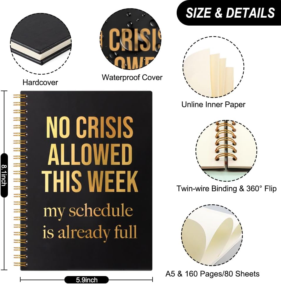 No Crisis Allowed This Week 160 Pages Hardcover Blank Spiral Notebook, Funny Work Life Humor Gifts for Work Friend, Perfect Co-Worker Gifts, Funny Boss Gifts, Office Gifts for Manager Leader