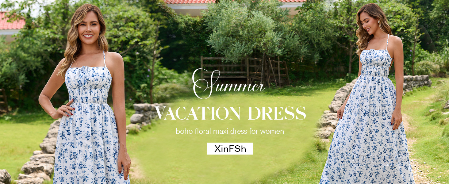 Stylish Design & Versatile Style:This summer maxi dress features a charming floral print, combining the vibes of a boho maxi dress and a sexy sundress. It's a sleeveless, halter, and backless dress that fits perfectly as a casual summer dress, making you stand out in any setting