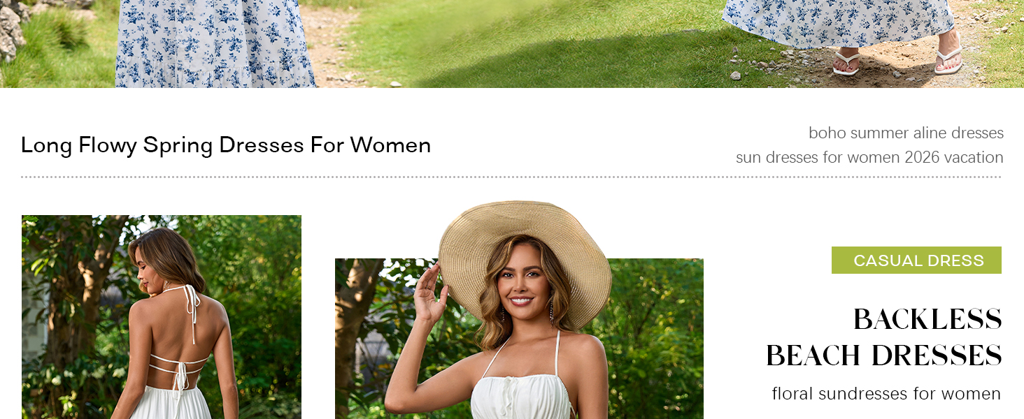 Design:flowy sundresses for women 2026,summer maxi dress,floral maxi dress,halter dress,backless dress,tie back dress,sleeveless dress for women,cutout dresses for women,open back dress,boho formal dress
