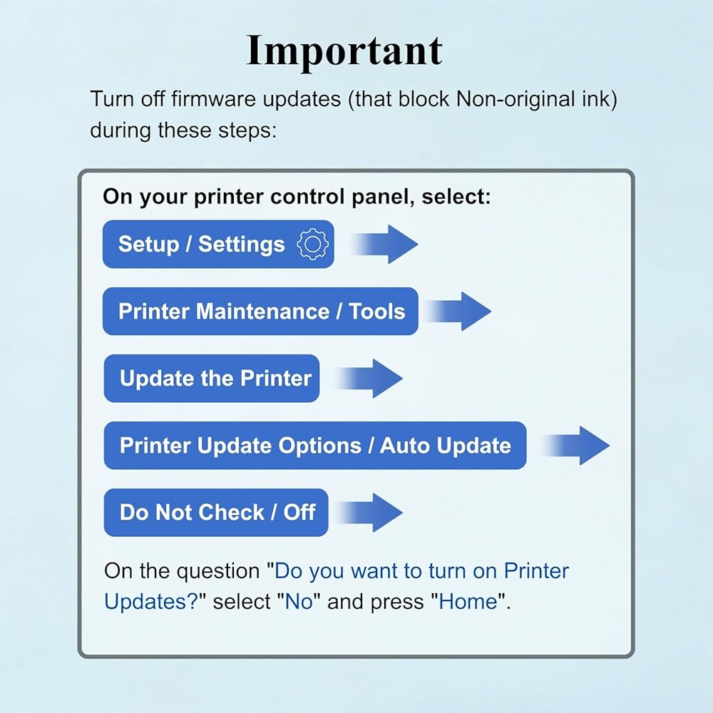 Note: Automatic printer firmware updates may affect the performance of compatible cartridges. We recommend turning off automatic updates to avoid unpleasant surprises