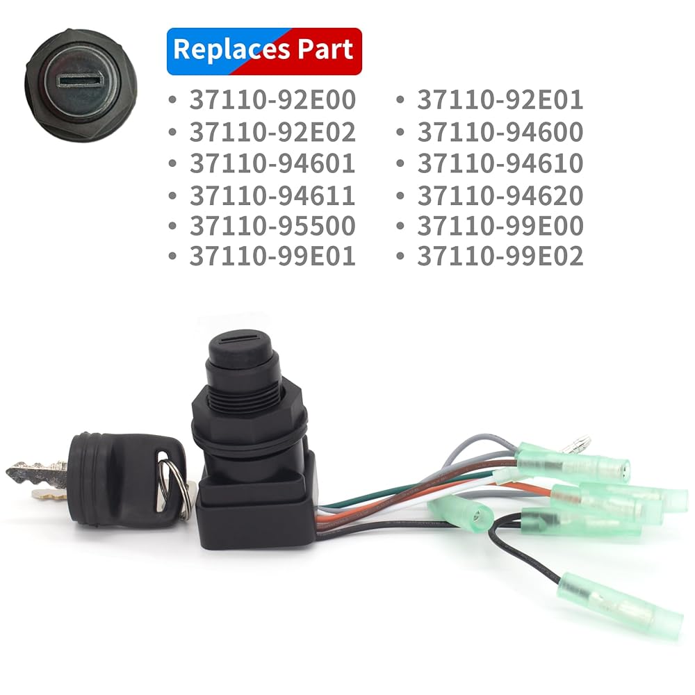 37110 92E00 Boat Main Switch Ignition Key Assembly for Suzuki 2 & 4 Stroke 8-225 HP Outboard Motors Control Box Replaces 37110-92E01 37110-99E01 Sierra MP51010