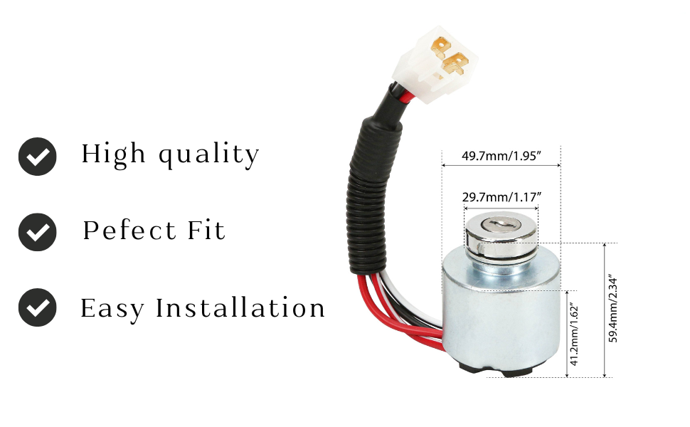 Package includes 1 Ignition Switch with 2 keys. High-quality material. Direct replacement parts. Please VERIFY your part number and model before purchase.