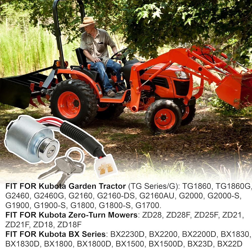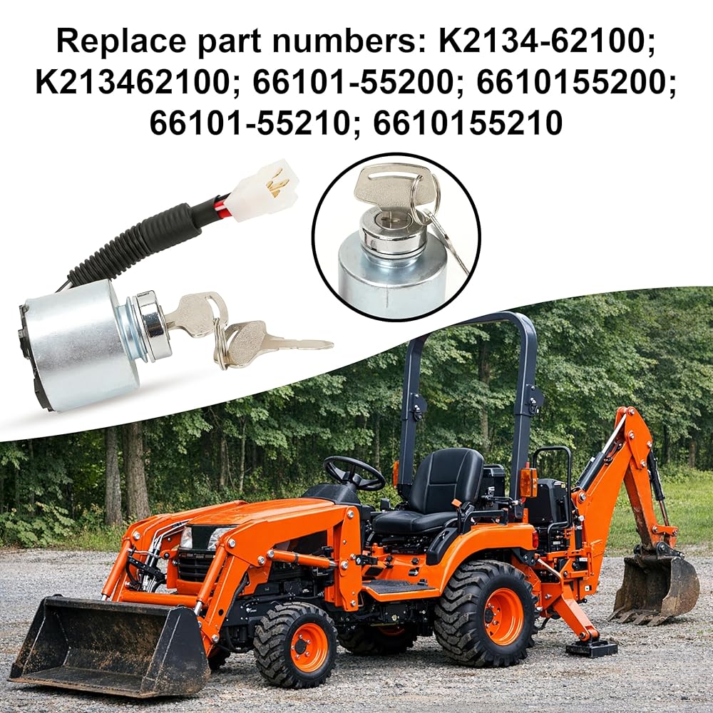 66101-55200 Ignition Switch with 2 Keys, Replacement for Kubota Tractors & Mowers BX22D, BX23D, BX2230, BX1500-BX2200, ZD18-ZD28, TG1860, G1700-G2460