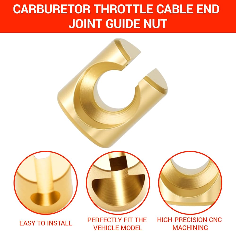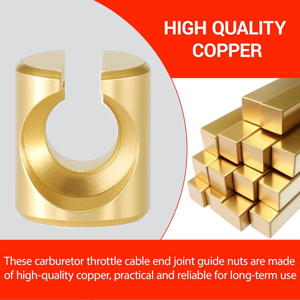 【SUPERIOR PROTECTION】The high-quality copper construction of this cable guide nut prevents damage to the throttle cable's outer layer, enhancing the longevity of your cables. This guide nut helps reduce vibrations and prevents displacement, ensuring safe and reliable throttle operation.