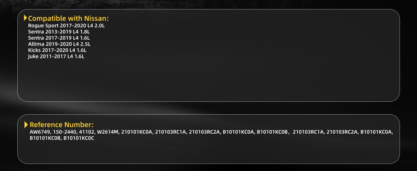• Fitment: Water Pump for Nissan Rogue Sport 2017-2020 L4 2.0L, Sentra 2013-2019 L4 1.8L, Sentra 2017-2019 L4 1.6L, Altima 2019-2020 L4 2.5L, Kicks 2017-2020 L4 1.6L, Juke 2011-2017 L4 1.6L