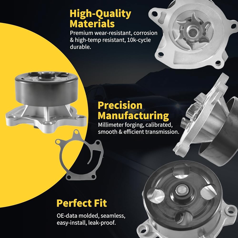 • Leak-free Performance: This engine water pump includes top grade bearings, durable and unitized seal ensures leak-free pump performance, Vibration polishing processing makes the housing shinier.