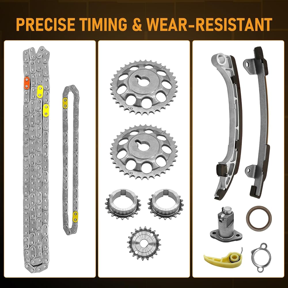 【Premium Durability】Crafted from high-grade materials to resist heat, corrosion and deformation. The timing chain kit head gasket set assembly ensures long-lasting performance, maintaining engine integrity even under extreme operating conditions.