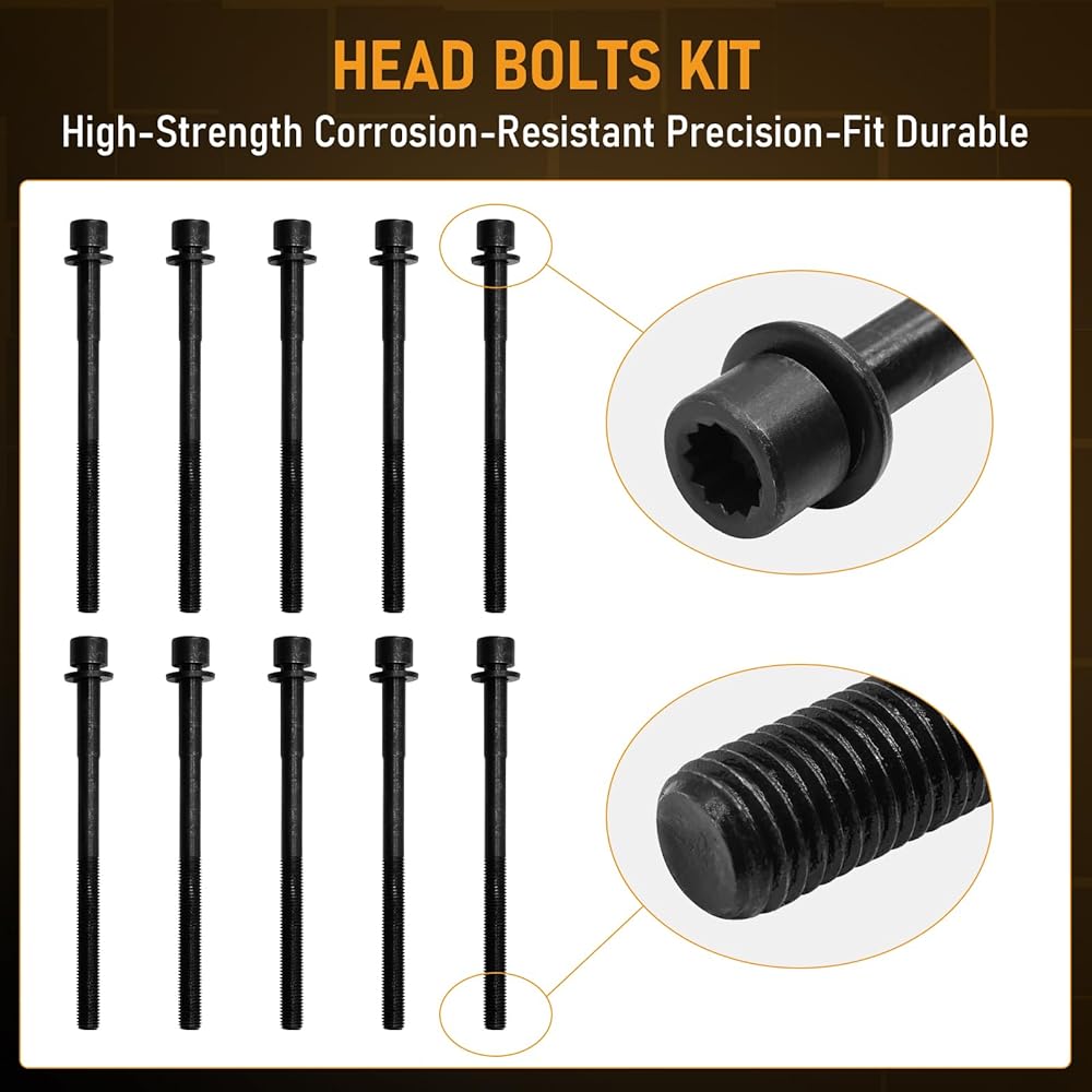 【Complete Components】All-in-one solution includes timing chain kit, head gasket set with bolts, water pump, and essential seals. This time chain head gasket water pump kit eliminates the hassle of separate part purchases for full engine repair.