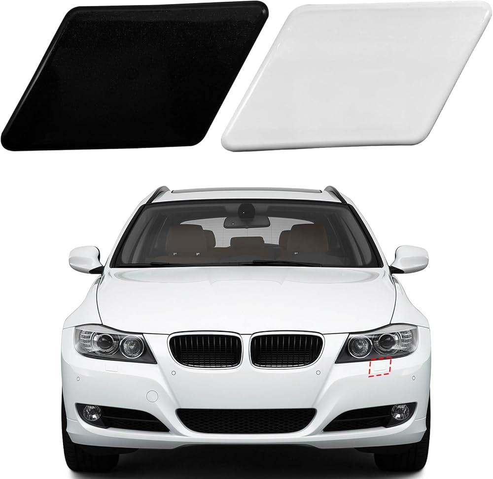 TOPUS Front Bumper Headlight Washer Nozzle Spray Cover Cap Replacements Cap for BMW E90 E91 320i 325i 330i 328i 2009-2012 61677211209 61677211210(Withe, Left Driver Side)
