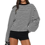 Discover the perfect blend of comfort, trend, and attitude with this oversized striped drop-shoulder long-sleeve tee. Crafted from soft cotton, it features bold contrasting stripes and a laid-back, roomy fit that transitions seamlessly through the seasons. Echoing nostalgic nods to 2000s Y2K style, 1990s preppy school-girl vibes, and the effortless clean-fit minimalism of early 2010s “soft-girl” trends, this tee is a mood unto itself. Tuck it into cuffed jeans for a retro cool, pair it with pleated skirts for Mean Girls-inspired prep energy, or wear it with joggers for cozy loungewear hours at home. From strolling through pumpkin patches and casual coffee dates in autumn, to weekend movie party vibes or cozy campus layers, this tee adapts with your attitude. Versatile, relaxed, and endlessly stylish—your fall wardrobe's new staple.