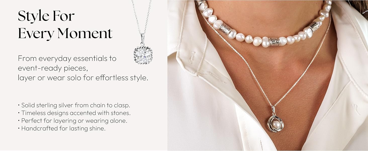 THE JEAN RACHEL WOMENS JEWELRY SILVER NECKLACES: Talented artisans craft stunning silver accessories for women jewelry, vintage jewelry for women and gemstone necklace for women such as 925 necklace silver, hypoallergenic necklace, statement jewelry for women, womens necklaces, dainty jewelry and other semi precious stone jewelry. We have wide array of jewelry sets for women and silver pendant necklace for women that perfectly complement every occasion - birthday necklace for women, mothers day necklace, silver necklace set for women and birthday gifts for women friendship. Each piece of our women necklace and silver statement necklace is a tribute to timeless beauty. Imagine the elegance of necklaces for women trendy telling the chapters of your unique story. Our delicate, dainty silver necklace for women embody grace and durability, while our boho necklace shine in life's grand celebrations. Swing from stardust with our pearl necklaces for women and necklace sets for women, designed to complement every occasion. Our women's necklace silver, necklace for her, necklace for friends, silver necklace for mom, mother necklace and vintage necklace for women ensures lasting brilliance, making it perfect for everyday womens necklace. The timeless allure of our collares de mujer elegantes and collares de plata 925 para mujer reflects classic elegance and modern sophistication. Call it sliver necklace, gemstone necklce, womens silver necklace, silver 16 inch necklace for women, cute silver jewelry or cute silver necklace for women but every piece of women necklace silver and red necklaces for women in our collection is meticulously crafted to encapsulate both sentiment and style. Jean Rachel's vintage necklaces and citrine necklaces enduring designs fuse the charm of bygone eras with contemporary refinement, pearl necklace and earring set creating heirloom-worthy pieces with pink pendant necklace. More than just collares de perlas para mujer, our gifts for women necklace.
