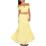 Women's Two Piece Summer Outfits Off Shoulder Frill Trim Crop Tops and Long Skirt Set Beachwear