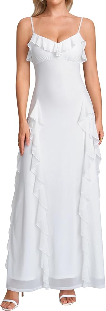 - Romantic Silhouette: Sweetheart neckline with ruffle trim and thin spaghetti straps creates a delicate, feminine look