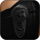 Black Rose Flower Brooch Pin : This vintage rose bead tassel brooch features roses as its main theme and is equipped with bead tassels for an elegant touch. victoria rose booch pin