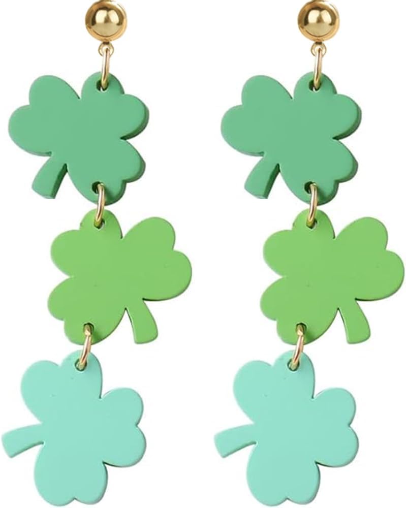 Thank you for choosing Eioi & Lmnm.Dangle in Festive Style: Celebrate St. Patrick's Day with these eye-catching three-layer Shamrock Drop earrings. Each piece is designed to bring a touch of Irish luck and lively charm to your look, combining traditional green clover symbolism with a modern, flowing silhouette that moves with you.