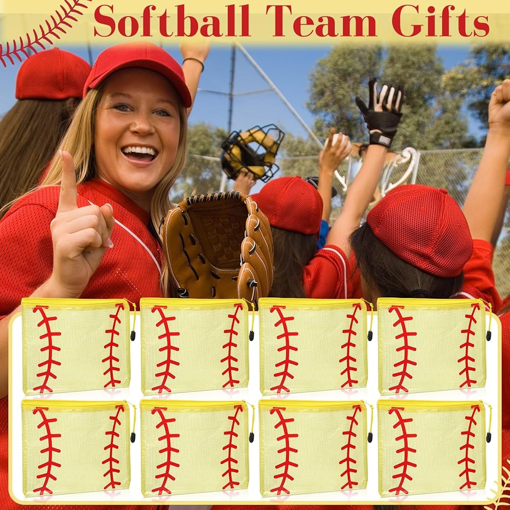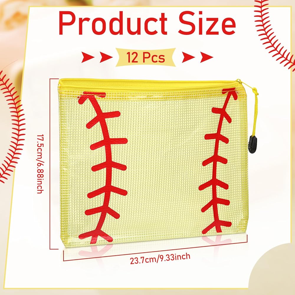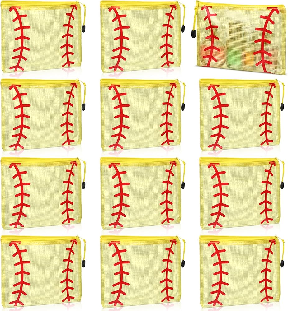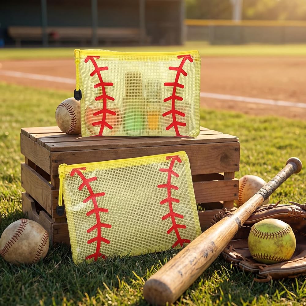 Our 12-piece softball cosmetic bag features a mesh design with a zipper and is perfect for carrying cosmetics or other daily necessities, showcasing your love for baseball. It's an ideal team gift and travel souvenir.