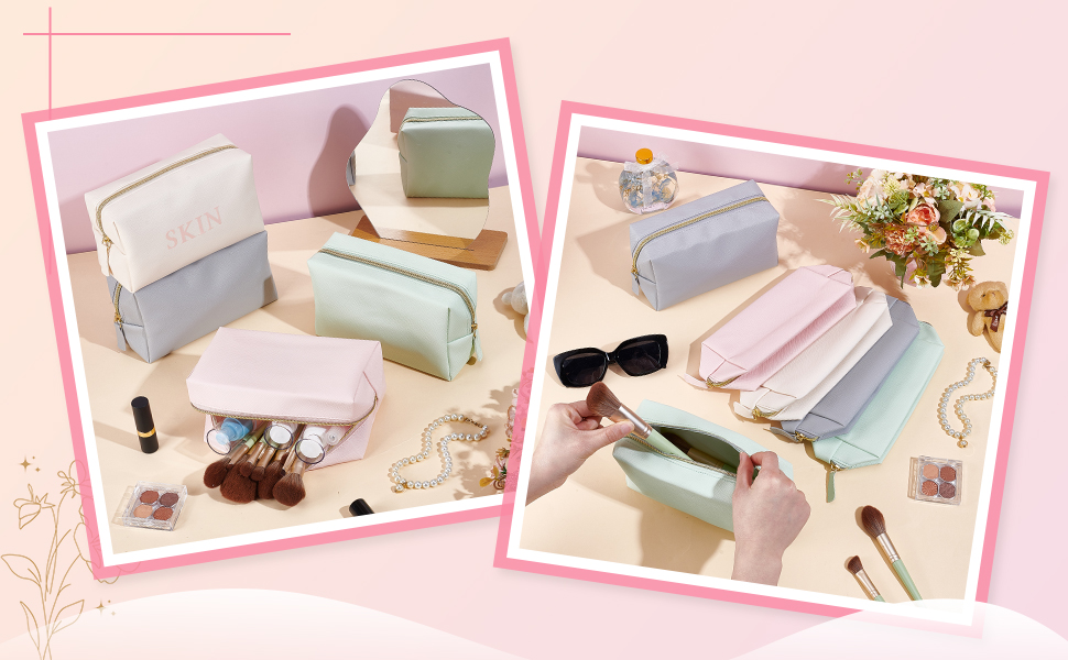 Multiple Function: These makeup bags are cute and plain, suitable as many kinds of bags, such as toiletry bag, travel bags, storage purses, even pencil pouches; You can put your items in these makeup bags for better preservation when you are at home or go out, suitable for travel, meeting, shopping, work and school