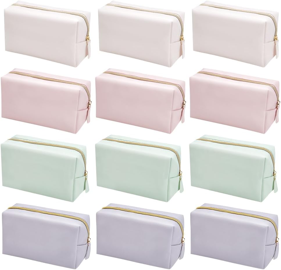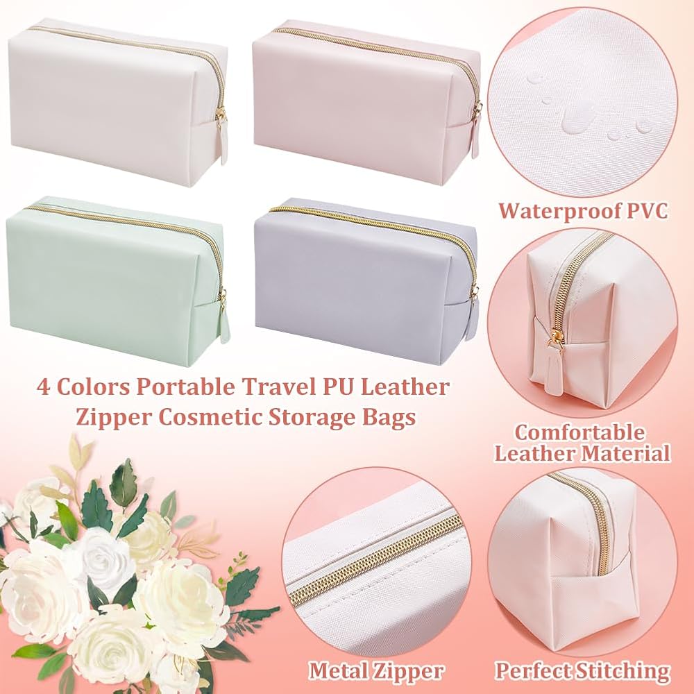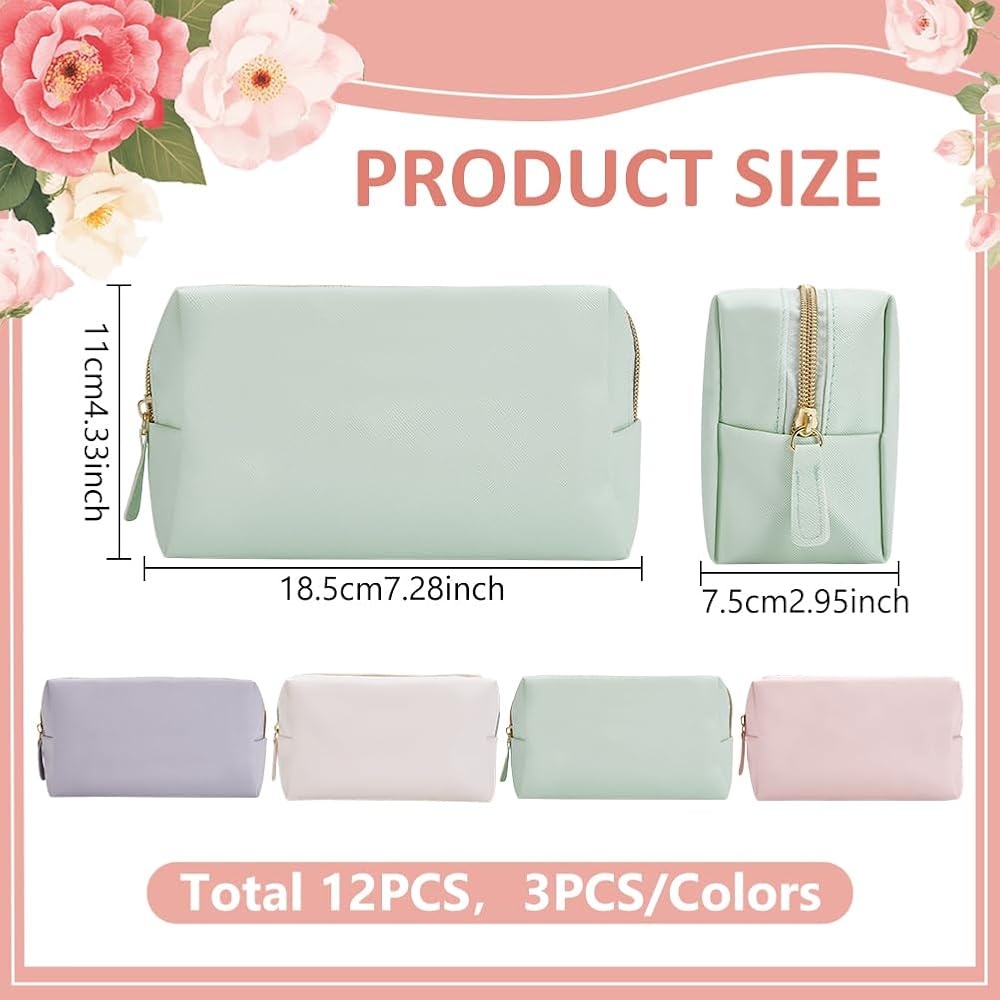 12Pcs 4 Color Makeup Bag PU Leather Cosmetic Pouch, Bridesmaid Makeup Bags Bulk Zipper Cosmetic Pouch Waterproof Small Portable Toiletry Bag for Women Travel Wedding Party Favors