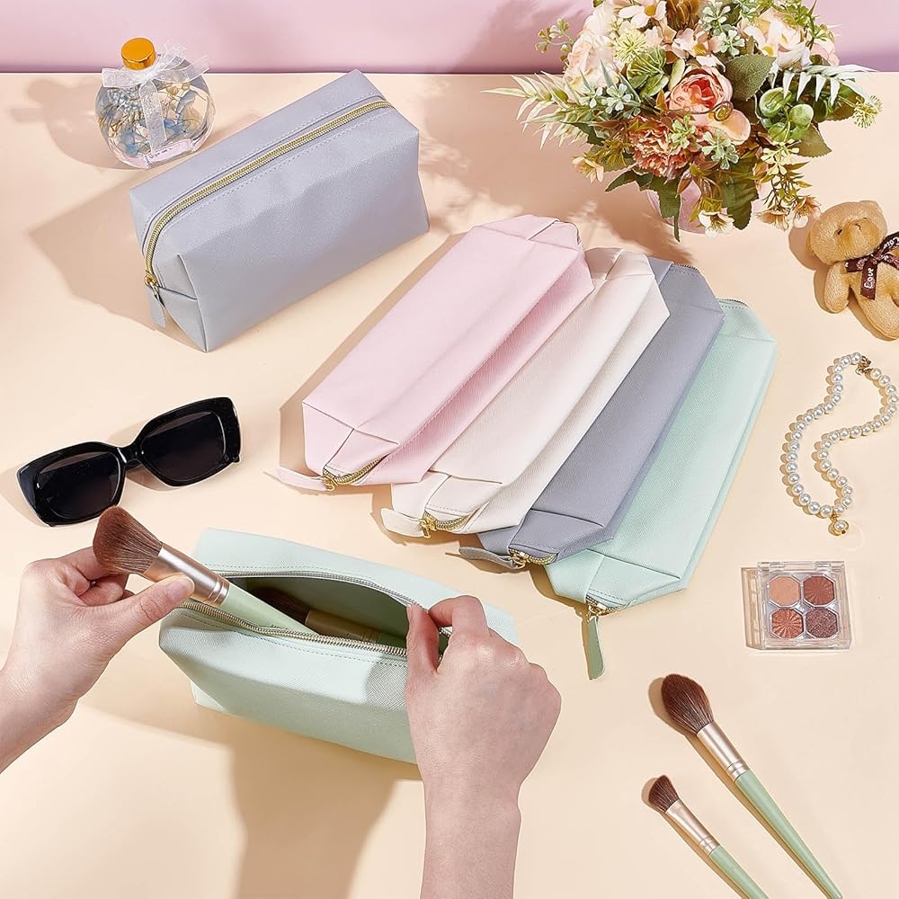 Macaron Color Palette: You will get 12 leather cosmetic bag in 4 different colors, old lace, dark sea green, misty rose, gray, the different colors can easily organize most of your toiletries, enough for you to store items and share with friends