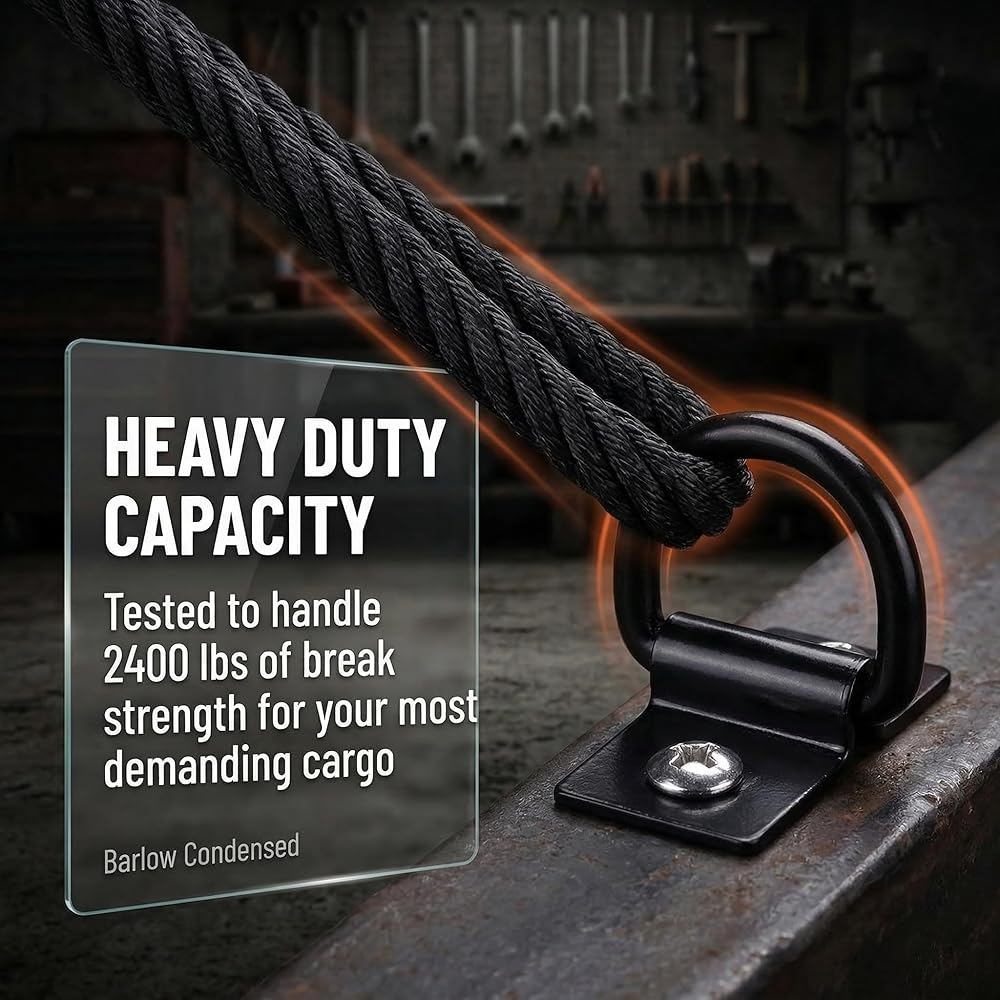 High strength load: The D-rings Tie Down Anchors Hooks 1/4" thickness solid steel. Each breaking strength 2400lb.