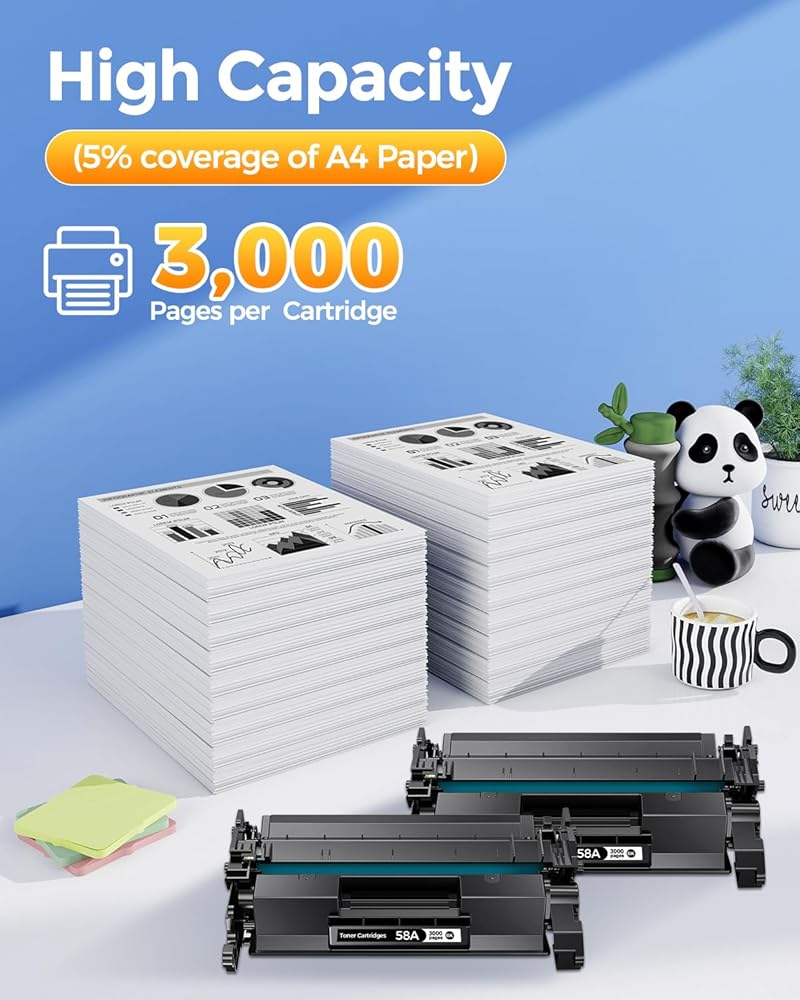 High Page Yield: Up to 3,000 Pages per 58A CF258A Black Toner (Base on Letter A4, at 5% coverage)
