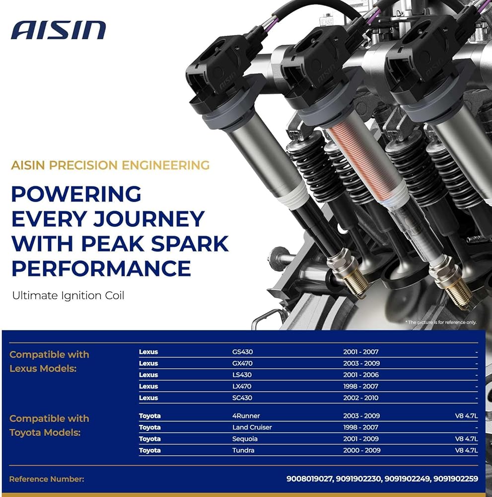 AISIN ESCT-00495 Ignition Coil - Compatible with Toyota Tundra 00-09, 4Runner 03-09, Land Cruiser 98-07, Sequoia 01-09, Lexus LX470 98-07, GX470 03-09, LS430 01-06, GS430 01-07, LX 98-07 - 4.3L 4.7L