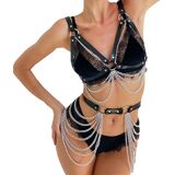 This punk garter belt set has almost too many adjusters to count, the adjusters allow for this to fit many different shapes and sizes so perfectly. You can adjust the adjusters to make the body harness lingerie fit your size, so you can wear it without any burden