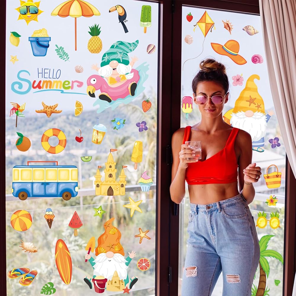 Look! these beautiful summer window stickers for glass windows perfect for decorating your house, and filling your home with a vibrant summer vibe, bright your day.