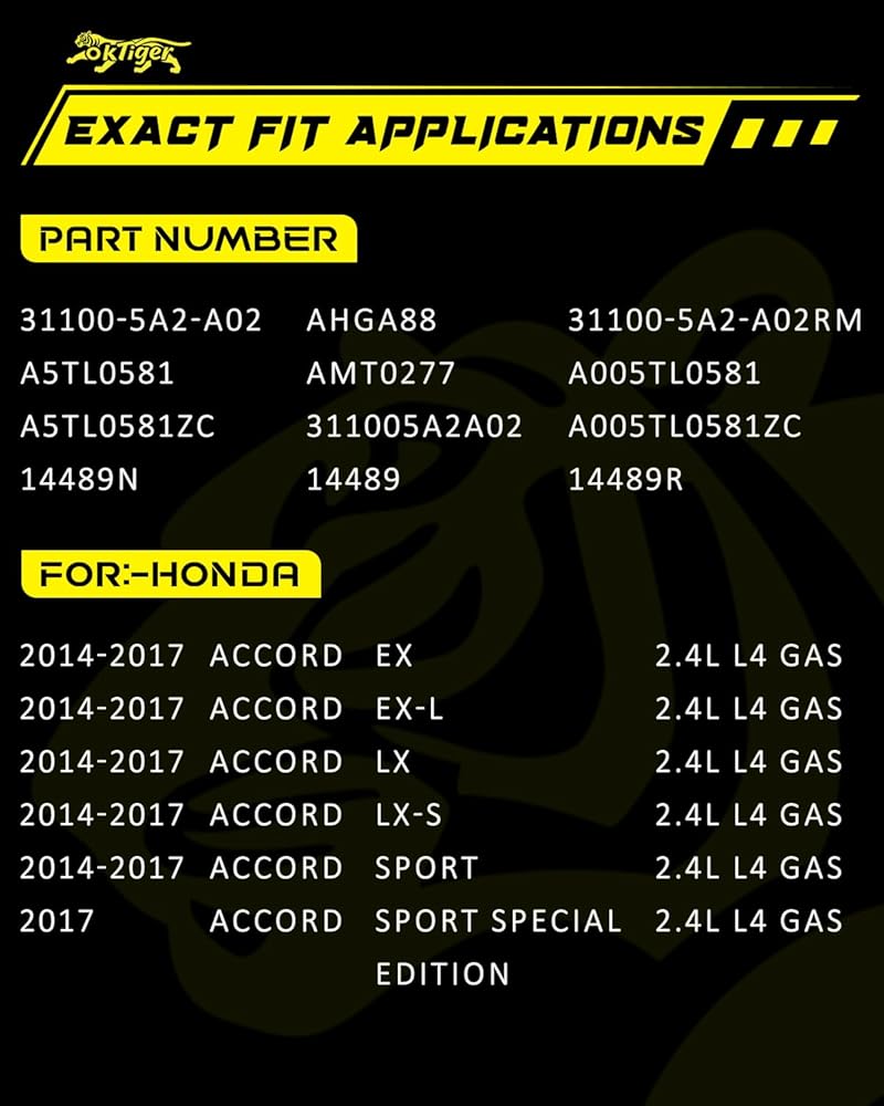 Fitment: Compatible with Honda Accord ex 2014 2015 2016 2017, Accord ex-l 2014 2015 2016 2017, Accord lx 2014 2015 2016 2017, Accord lx-s 2014 2015 2016 2017, Accord sport 2014 2015 2016 2017, Accord sport special edition 2017, Only Fit for Automatic CVT Transmission