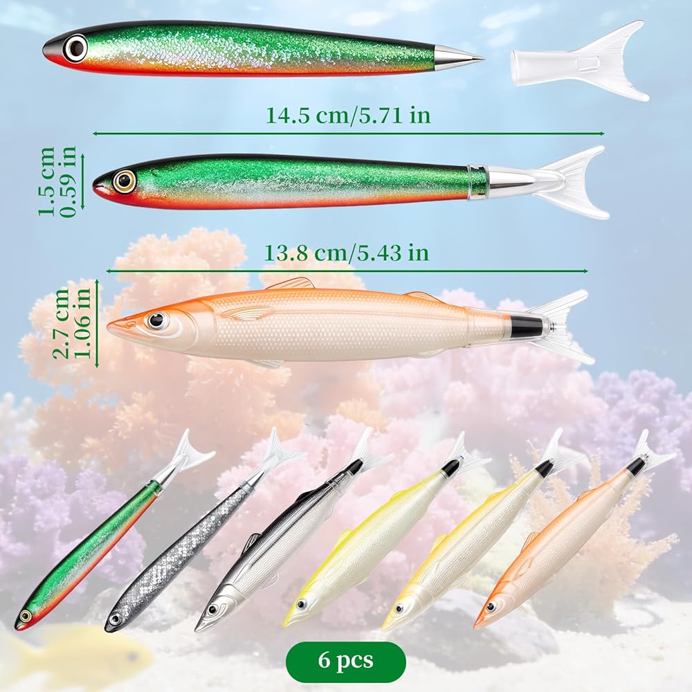 Package Include: You will receive a fun set of 6 cute fish pens, each featuring a unique and vibrant fish design in assorted colors like yellow, grey, orange, and gold. This variety adds a playful touch to your desk and makes sharing or gifting easy.