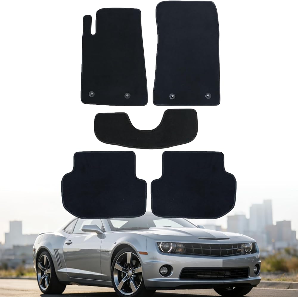 Mythoria Car Floor Mats Full Set Fit for Chevrolet Camaro LT SS ZL1 2010 2011 2012 2013 2014 2015 | Black, Velour Carpet | Waterproof, with Anti-Slip Backing