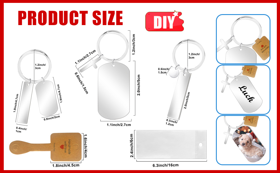 Sufficient Quantity for Crafting:This set includes 42 engravable metal keychain blanks, with 45 tags and 45 packaging bags, providing ample supplies for various DIY projects