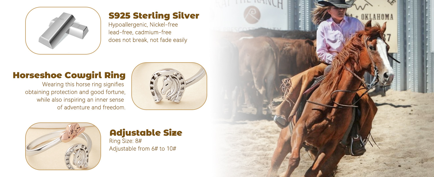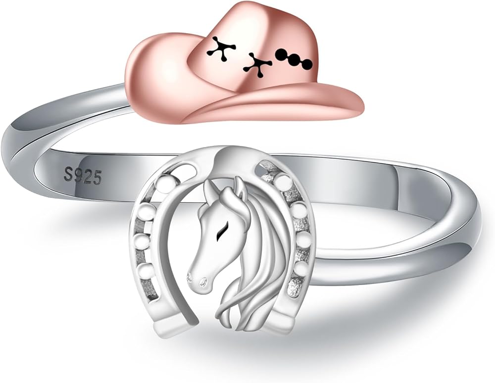 Introducing the Horseshoe Hat Ring, a unique blend of Western charm and meaningful symbolism. Crafted from premium 925 sterling silver, this hypoallergenic ring is nickel-free, lead-free, cadmium-free, durable, and fade-resistant. Featuring a horseshoe, a symbol of protection and good luck, seamlessly integrated with Western hat elements, this ring exudes a stylish and adventurous vibe. Its adjustable design fits finger sizes ranging from #6 to #10, making it a perfect gift for equestrians, horse owners, cowboys. Whether it's for Christmas, Mother's Day, Valentine's Day, Thanksgiving, a birthday, or an anniversary, this ring is a thoughtful choice for mothers, wives, daughters, and friends.