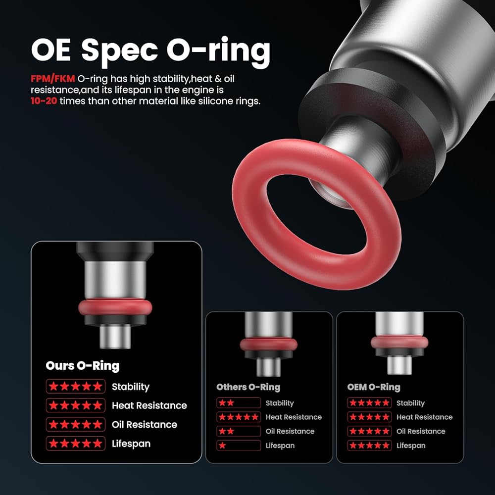 Specification:Set of 6 OE Spec replacement fuel injectors; 4 Injection ports as original part; Every fuel injector is tested before shipment; Direct replacement, easy installation; A long service life & stable working; Helps resolve idle issues, check engine light alerts, error codes, fuel efficiency