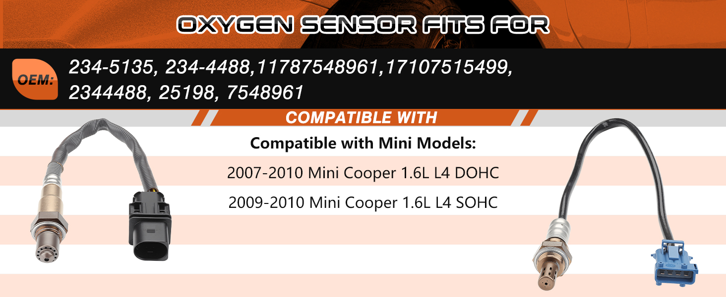 【Vehicle Fitment】ACAUTO 234-5135 234-4488 Oxygen O2 Sensor is fit for Mini Cooper 1.6L L4 DOHC 2007 2008 2009 2010;fit for Mini Cooper 1.6L L4 SOHC 2009 2010.