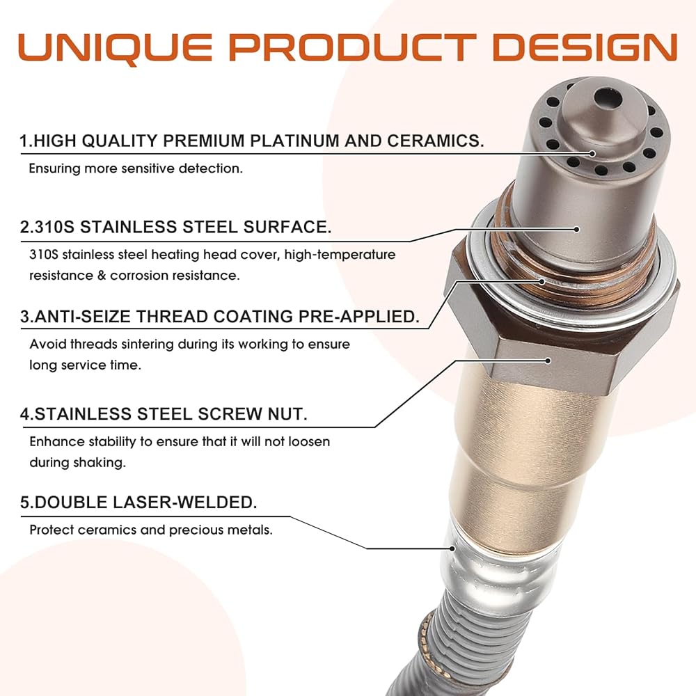 【Accurate and Durability】The Oxygen Sensor guarantees superior performance with high-quality materials, including platinum, ceramics & 310S stainless steel. Carefully selected components ensure accurate detection and durability, making it the top choice for precise readings. Choose our sensor for dependable oxygen level data.