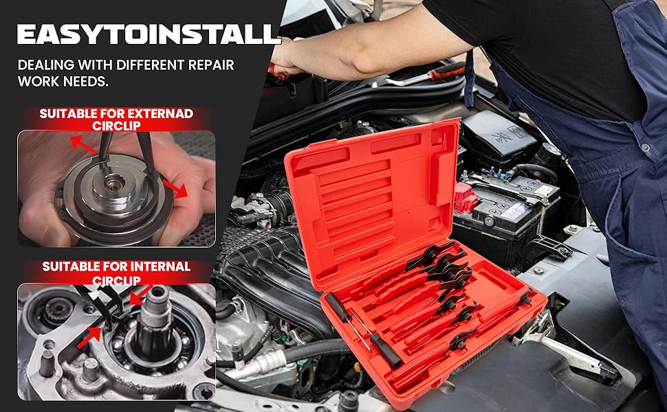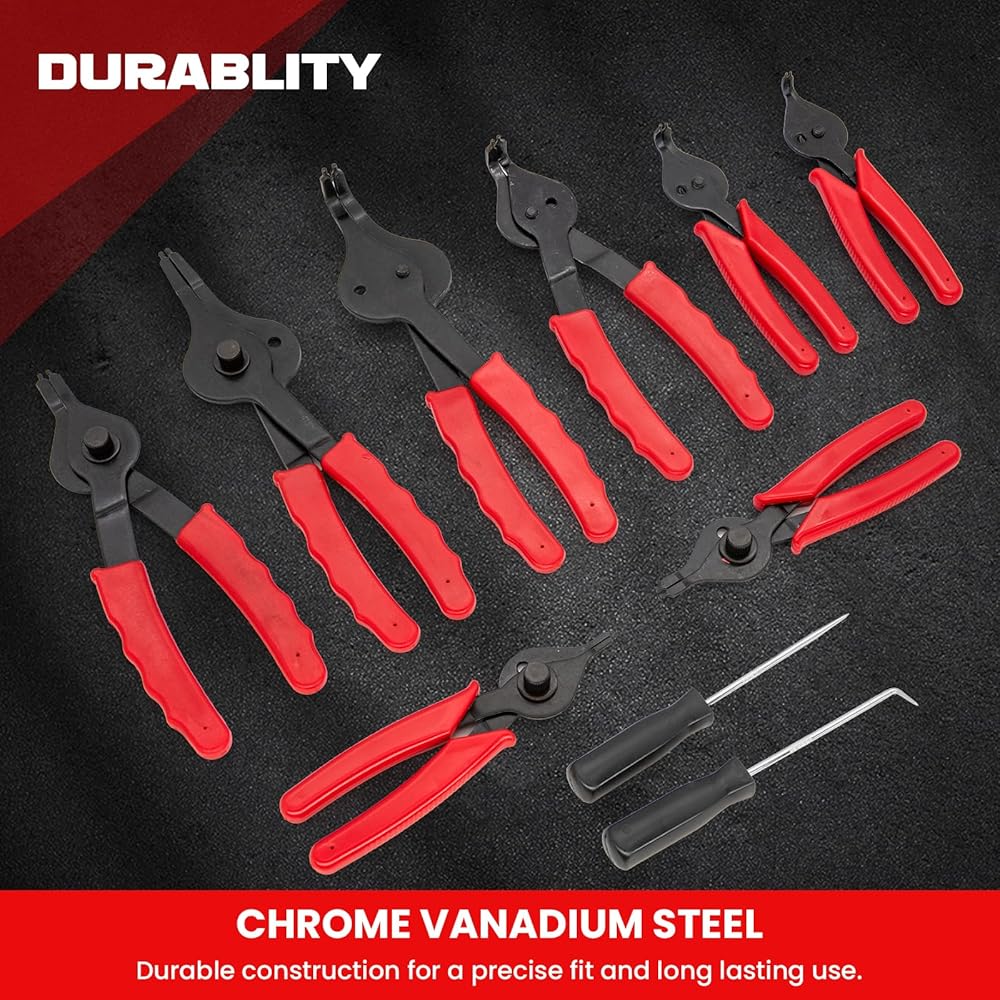 Wide Range of Applications:Snap Ring Pliers Set,often most commonly found on lawnmowers, tractors, shredders, farm equipment, automotive, trucks, cars and SUV's,Perform brake pad removal and routine maintenance