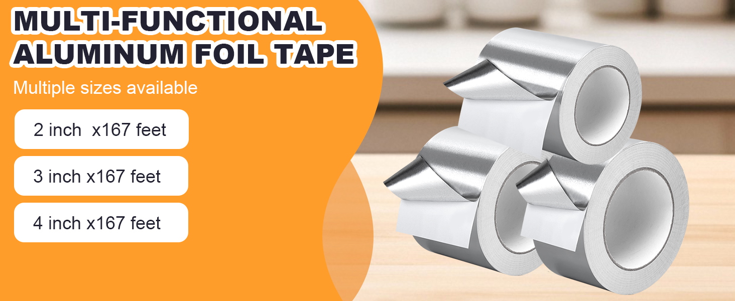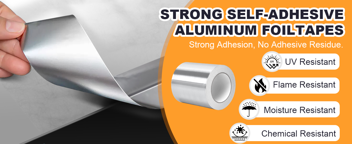 Multipurpose: Aluminum Foil Tape is suitable for smooth, flat and irregular surfaces, and can be widely used for high temperature sealing repairs, HVAC, air ducts, metal repairs, ductwork, foam board, insulation, dryer vents, DYI and other indoor and outdoor applications