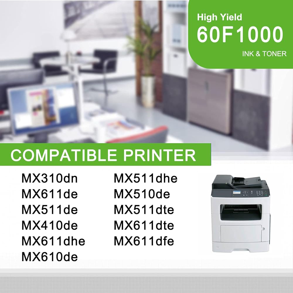 SLIKIA 601 60F1000 Black Toner Cartridge, Compatible 1 Pack 60F1000 Replacement for Lexmark MX310dn MX611de MX511de MX410de MX611dhe MX610de MX511dhe MX510de MX511dte MX611dte Printer, SLIKIA 601 60F1000 Cartucho de tóner negro, compatible con 1 paquete 60F1000 de repuesto para impresora Lexmark MX310dn MX611de MX511de MX410de MX611dhe MX610de MX511dhe MX510de MX511dte MX611dte