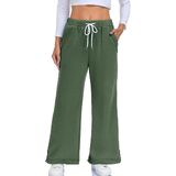 Feature:Drawstring pants women,baggy pants women feature elastic low-waisted design, two functional side pockets, wide leg, exposed seams, tapered hemline, adjustable drawstring, side slit hem, and relaxed billowy silhouette