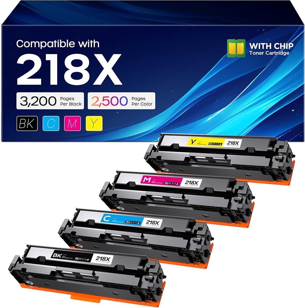 218X Toner Cartridges 4 Pack 3301sdw 3301cdw with Chip Compatible Replacement for HP 218X 218A 218 W2180X High Yield for Color LaserJet Pro MFP 3301fdw 3201dw 3301 Printer (Black Cyan Yellow Magenta)