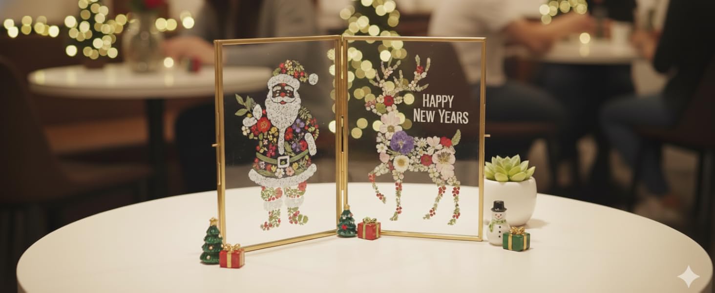 Double Folding Rectangle Standing Frame: Made from high-quality brass with high-definition glass, this double-sided pressed flower frame showcases embossed pressed flowers for a refined touch. The flexible hinge allows for easy angle adjustment, offering versatile display options. Perfect for both home and office, it brings a modern, elegant charm to any deskdesktop or bookshelf.(FRAME ONLY, NOT INCLUDING DRIED FLOWERS)