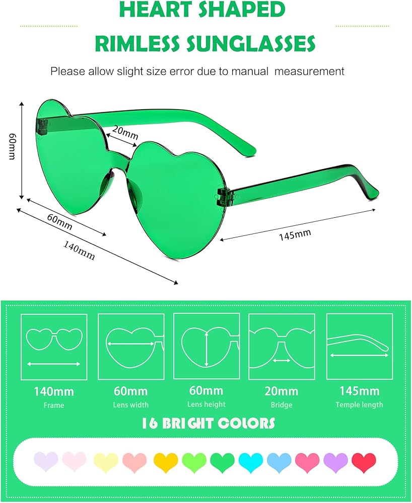 【Rich in Color】 The package includes 16 pack of heart glasses, are able to match your different clothes and help you show your own style, and you can also share them with your friends